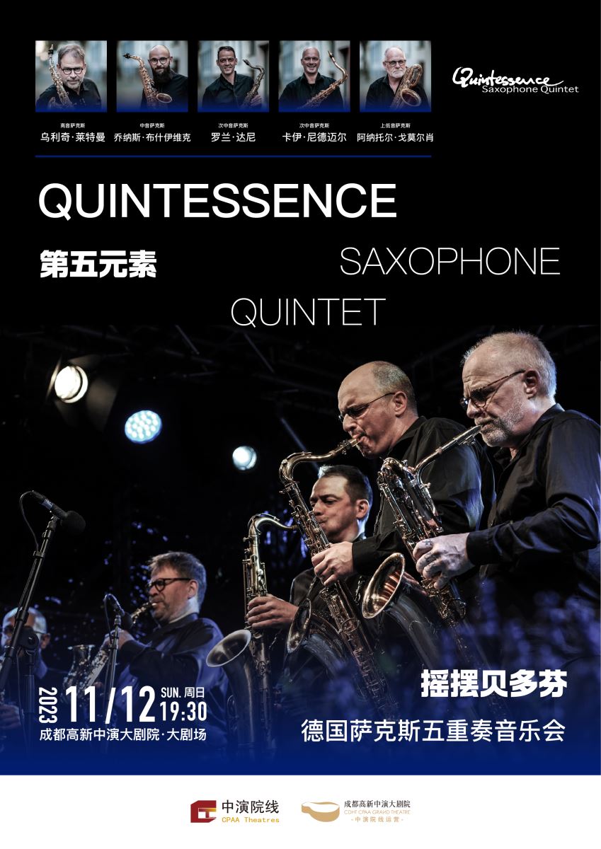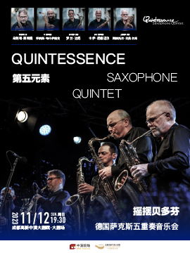 “第五元素”成立于1993年,由五位来自德国和英国的萨克斯大师组成。乐团以中国传统五行学说而命名,五位大师分别代表着金、木、水、火、土。这5个元素中,曾有3个元素在过去的岁月中,顺利完成了新老交接。2023年,乐团年满30周年。