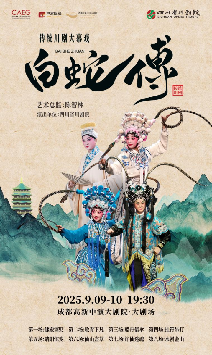此次四川省川剧院携经典传统川剧《白蛇传》,参加四川省第三届川剧汇演由四川省文联主席、四川省川剧院院长陈智林担任艺术总监,以青春靓丽的精锐演出阵容倾情呈现:前文后武的白素贞由尹莲莲饰演,“恋爱脑”许仙由杨坤昊饰演,“最佳男闺蜜”青儿由谢章洪饰,“最佳女闺蜜”青儿由蒲丽玲饰演,“不懂爱”的法海由李科饰演,“爱情绊脚石”王道陵由万多饰演,“最强爱情助攻”艄翁由杨鸿宇饰演。